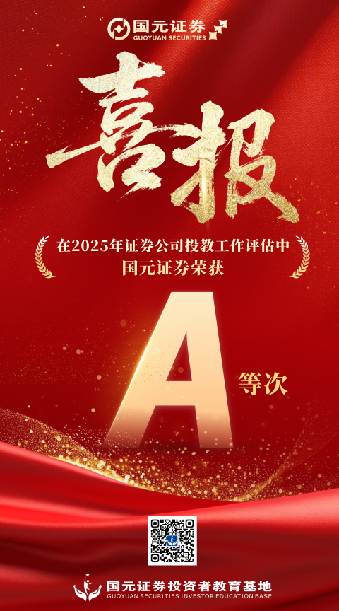 近日,中国证券业协会、上海证券交易所、深圳证券交易所、全国股转公司联合发布了2025年证券公司投资者教育工作评估结果。本次共有105家证券公司参与评估,历经严格自评、复评与复核,国元证券最终斩获最高A等次,再次荣耀登榜!